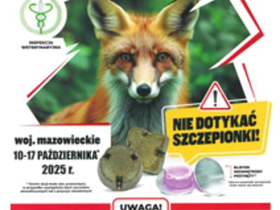 23.09.2025Informujemy, że w dniach 10–17 października na terenie województwa mazowieckiego prowadzona będzie akcja zrzutów szczepionki...
