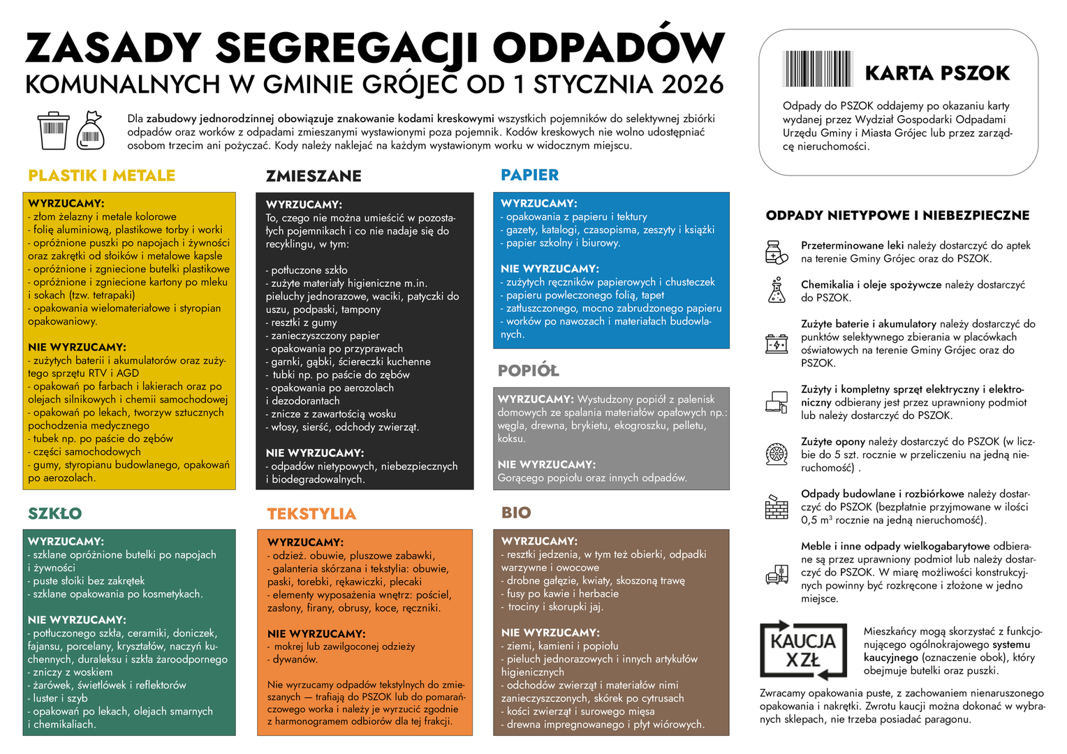 Ulotka Segregacja Załączniki segregacja_2021v2.jpg [1.25 MB] ulotka odpady tył A4 kopia 4 ang kopia [3.67 MB] ulotka odpady tył A4 kopia 4 ukr kopia [3.58 MB] Ulotka o segregacji odpadów 2026 r. [3.28 MB] Drukuj Kopiuj link Facebook.com X.com