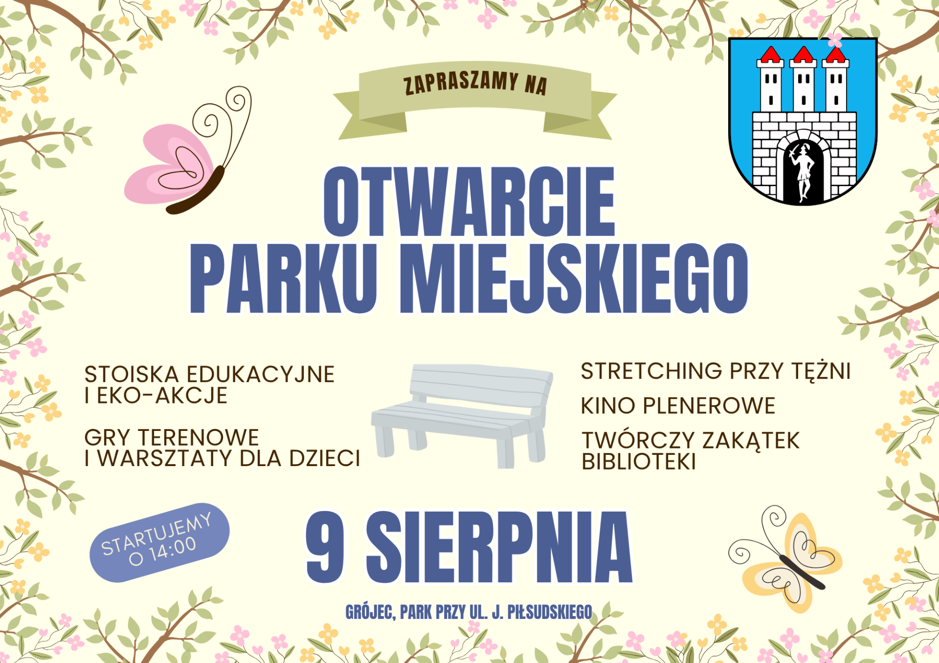 Zapraszamy serdecznie na wyjątkowe wydarzenie: oficjalne otwarcie zrewitalizowanego Parku Miejskiego w Grójcu! To nie tylko przestrzeń pełna zieleni, ale miejsce stworzone z myślą o Was wszystkich: rodzinach, seniorach, młodzieży, sportowcach, miłośnikach kultury i natury. Chcemy, by stał się on sercem naszego miasta, tętniącym życiem, energią i wspólnym czasem.