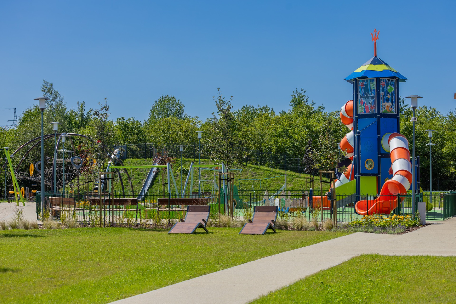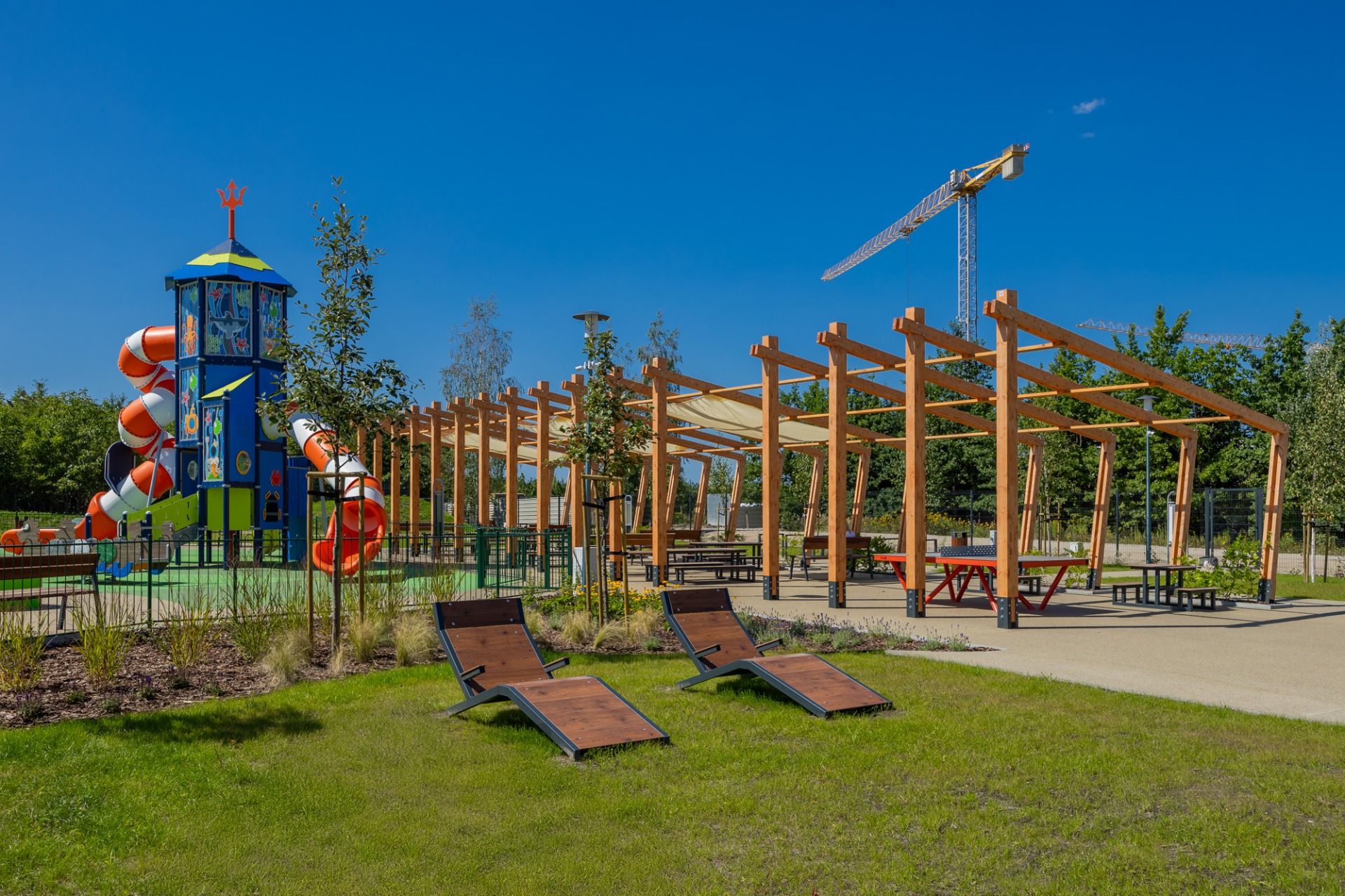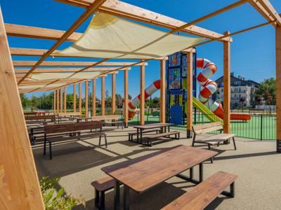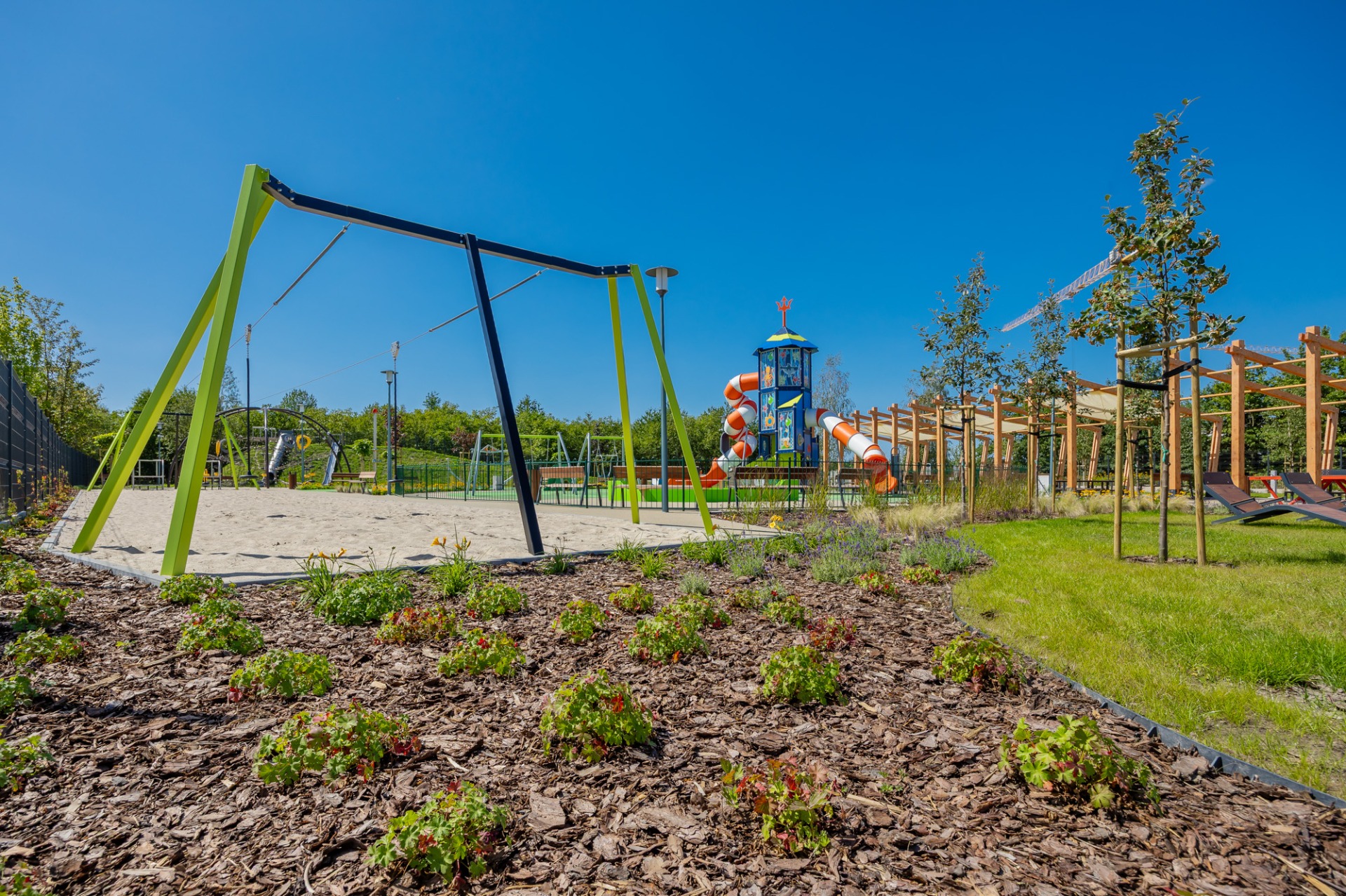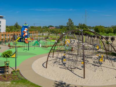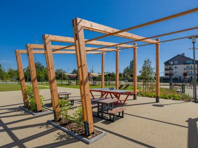 Nowa przestrzeń miejska to m.in. pergola ze stołami piknikowymi, polana rekreacyjna z leżakami, plac zabaw dla dzieci młodszych i starszych, górka saneczkowa, zamgławiacz, a także liczne ścieżki spacerowe otoczone roślinnością. Całość została wyposażona w nowoczesne oświetlenie, monitoring, stojaki na rowery, ławki i kosze na śmieci, aby zapewnić komfort i bezpieczeństwo użytkowników.