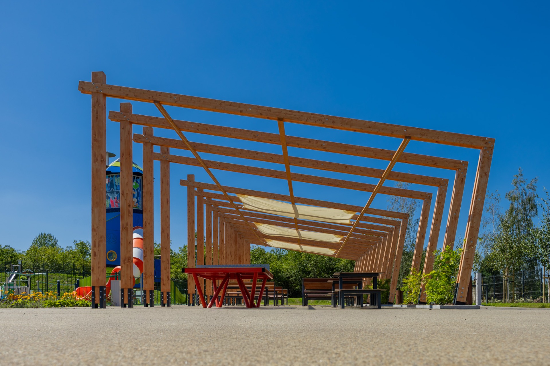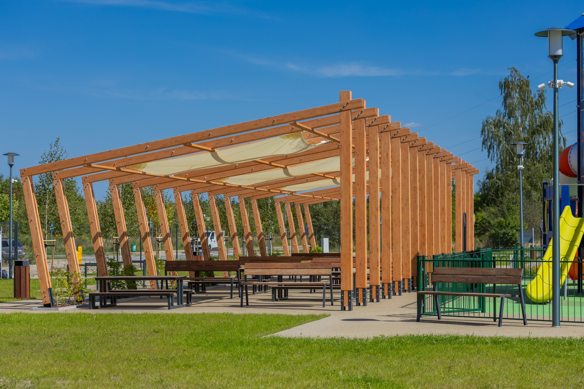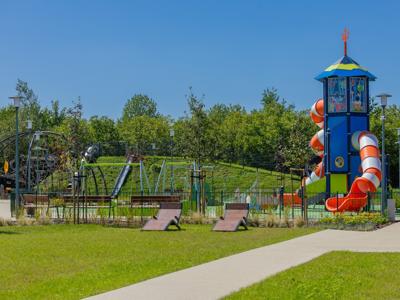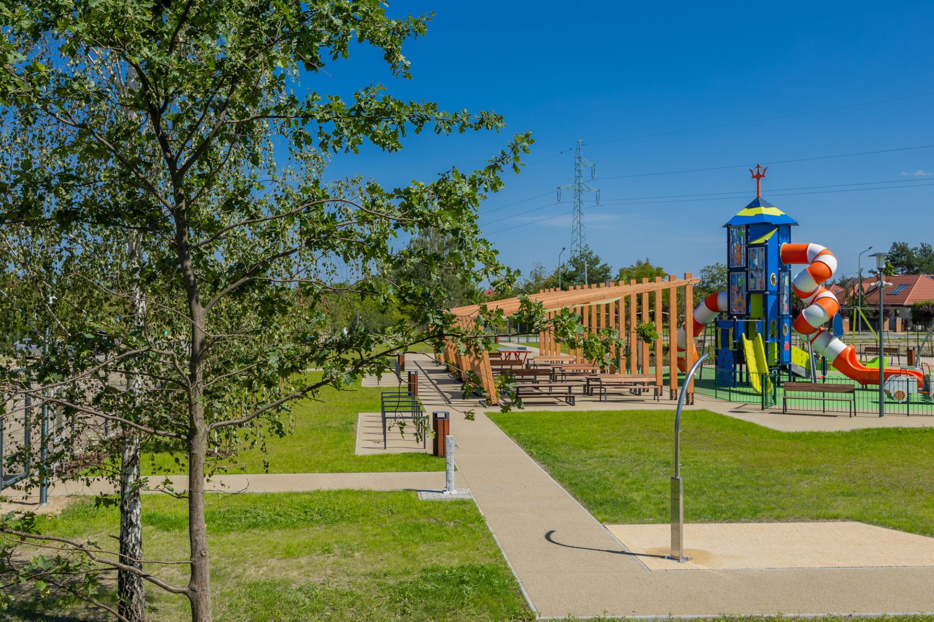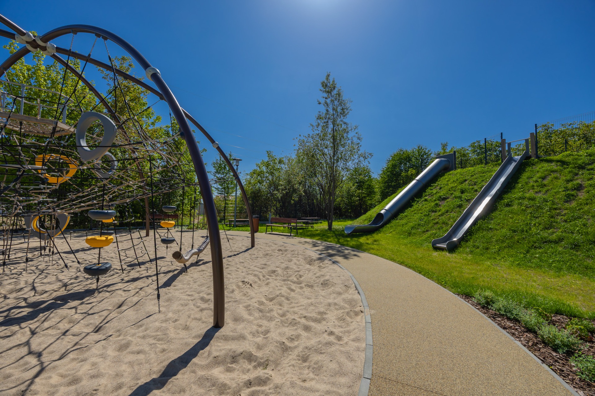 Nowa przestrzeń miejska to m.in. pergola ze stołami piknikowymi, polana rekreacyjna z leżakami, plac zabaw dla dzieci młodszych i starszych, górka saneczkowa, zamgławiacz, a także liczne ścieżki spacerowe otoczone roślinnością. Całość została wyposażona w nowoczesne oświetlenie, monitoring, stojaki na rowery, ławki i kosze na śmieci, aby zapewnić komfort i bezpieczeństwo użytkowników.