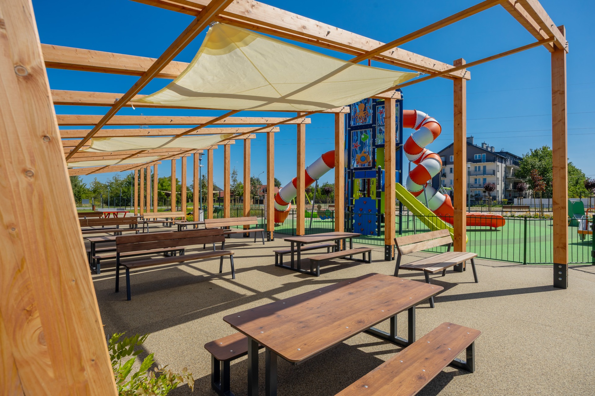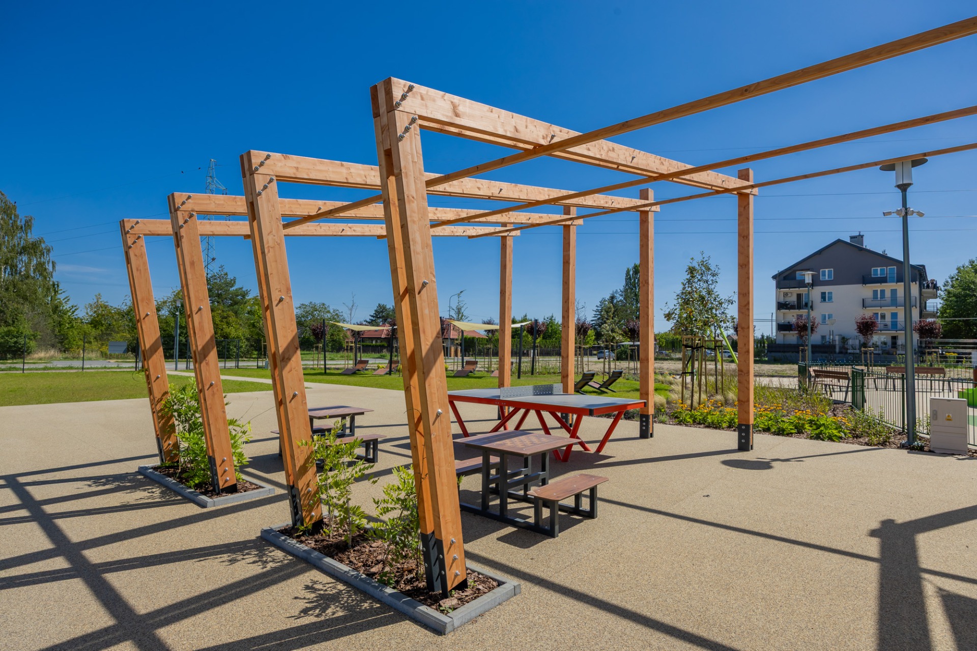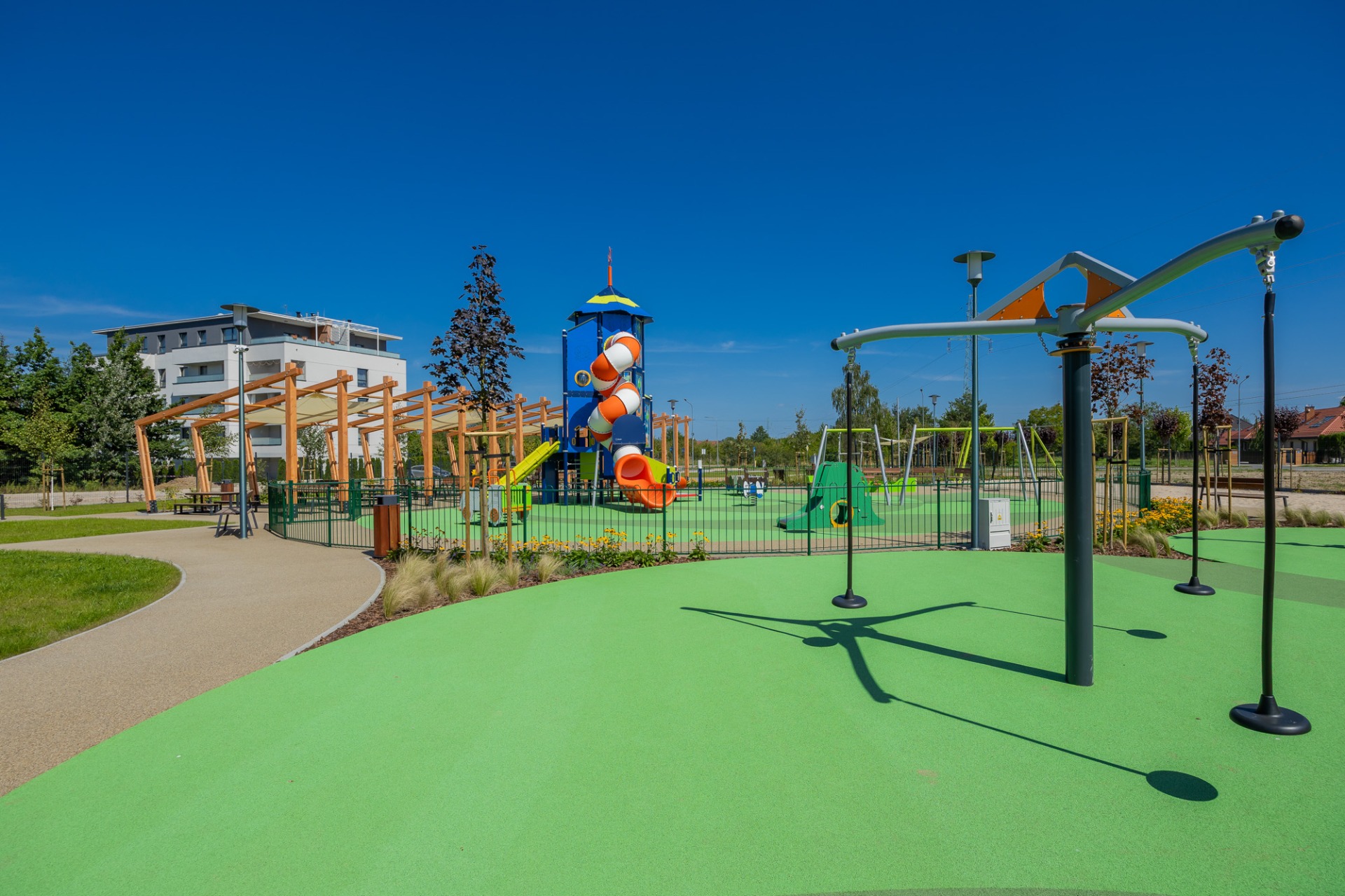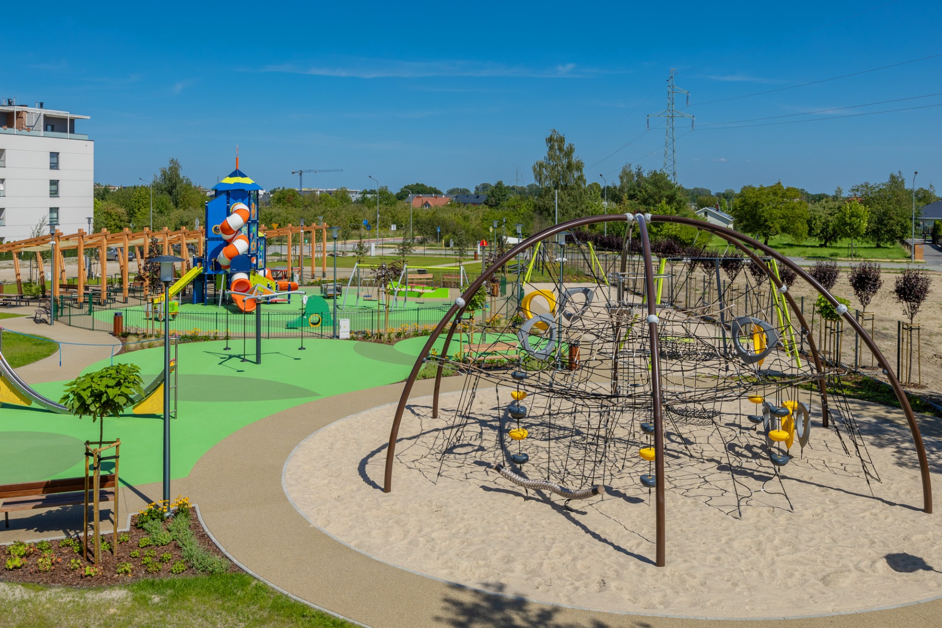 Skwer to nowoczesna, ogólnodostępna przestrzeń dla mieszkańców, w której każdy – od najmłodszych po seniorów – znajdzie coś dla siebie.