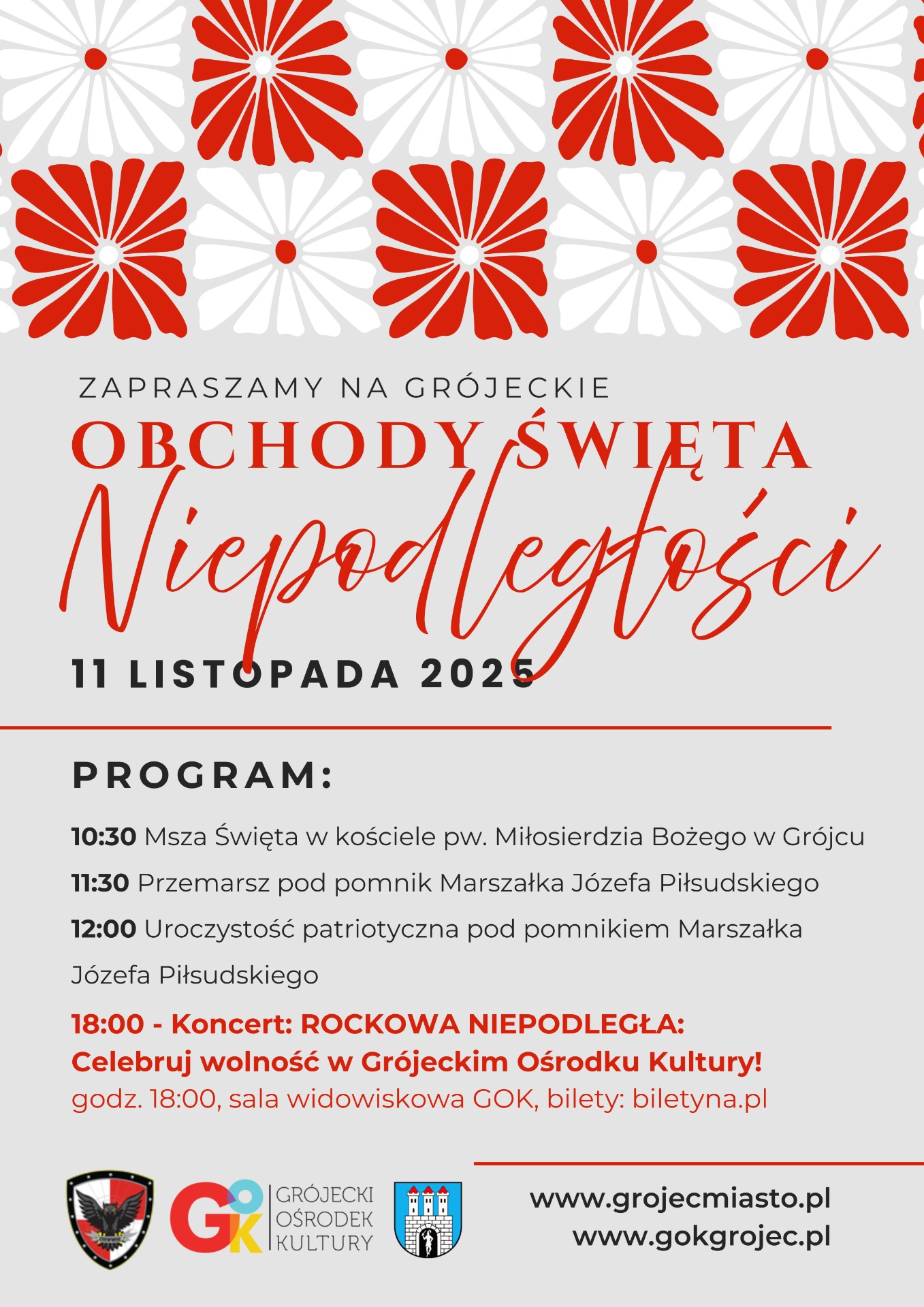 A wieczorem zapraszamy na koncert: „ROCKOWA NIEPODLEGŁA: Celebruj wolność w Grójeckim Ośrodku Kultury”.
