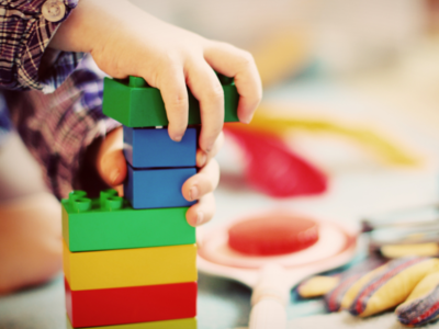 Drewniane klocki wrzucamy do pojemnika z odpadami zmieszanymi, a plastikowe do tworzyw sztucznych (żółte).