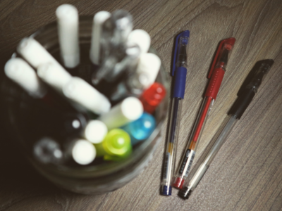Długopisy, kredki oraz ołówki, niezależnie od materiału z którego są zrobione, wyrzucamy do pojemnika na odpady sztuczne (żółty).