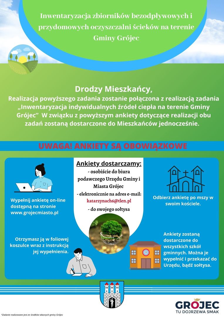 Realizacja powyższego zadania zostanie połączona z realizacją zadania „Inwentaryzacja indywidualnych źródeł ciepła na terenie Gminy Grójec” W związku z powyższym ankiety dotyczące realizacji obu zadań zostaną dostarczone do Mieszkańców jednocześnie.