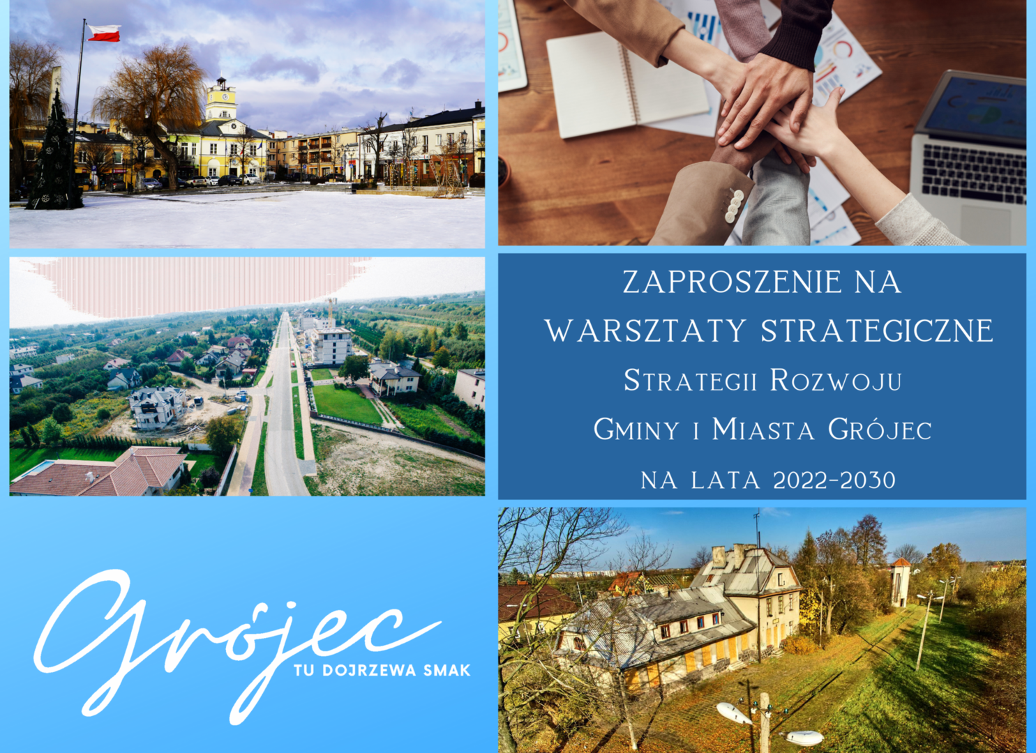 Urząd Miasta i Gminy Grójec w ramach prac nad Strategią Rozwoju Gminy i Miasta Grójec na lata 2022-2030 zaprasza do udziału w warsztatach strategicznych, których celem będzie wypracowanie strategicznych obszarów rozwoju, zdefiniowanie planowanych do osiągniecia celów operacyjnych (w tym planowanych do podjęcia kierunków działań) oraz opracowanie misji i wizji Gminy.