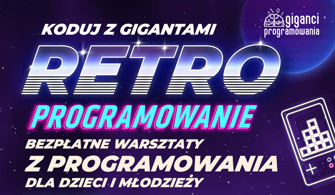 Wyruszmy razem w przeszłość śladami najpopularniejszych gier! Już od 4 do 26 lutego dzieci i młodzież z całej Polski będą mogły wcielić się w rolę programistów sprzed lat, którzy stworzyli klasyki gier komputerowych i wideo. Okazją do tego będzie akcja “Koduj z Gigantami - Retroprogramowanie”, czyli kolejna odsłona cyklicznego wydarzenia z programowania dla dzieci i młodzieży, które organizowane jest bezpłatnie już po raz 12.
