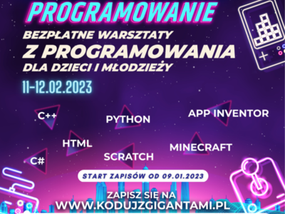 Akcja odbywać się będzie w całej Polsce stacjonarnie i online w dniach od 4 do 26 lutego. Na warsztaty można zapisywać się od 9 stycznia na stronie internetowej wydarzenia www.kodujzgigantami.pl.