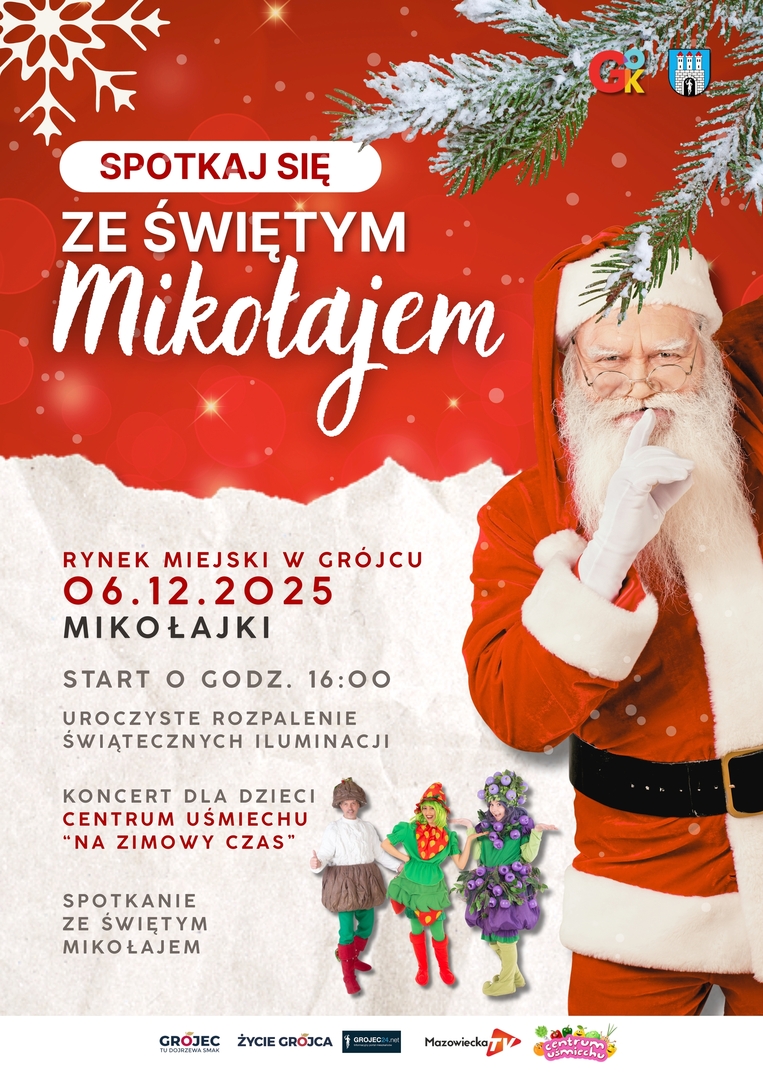 Przygotujcie się na magiczny czas! Dariusz Gwiazda - Burmistrz Gminy i Miasta Grójec oraz Dyrektor Grójecki Ośrodek Kultury Monika Elżbieta Woźniak zapraszają na huczne Mikołajki!