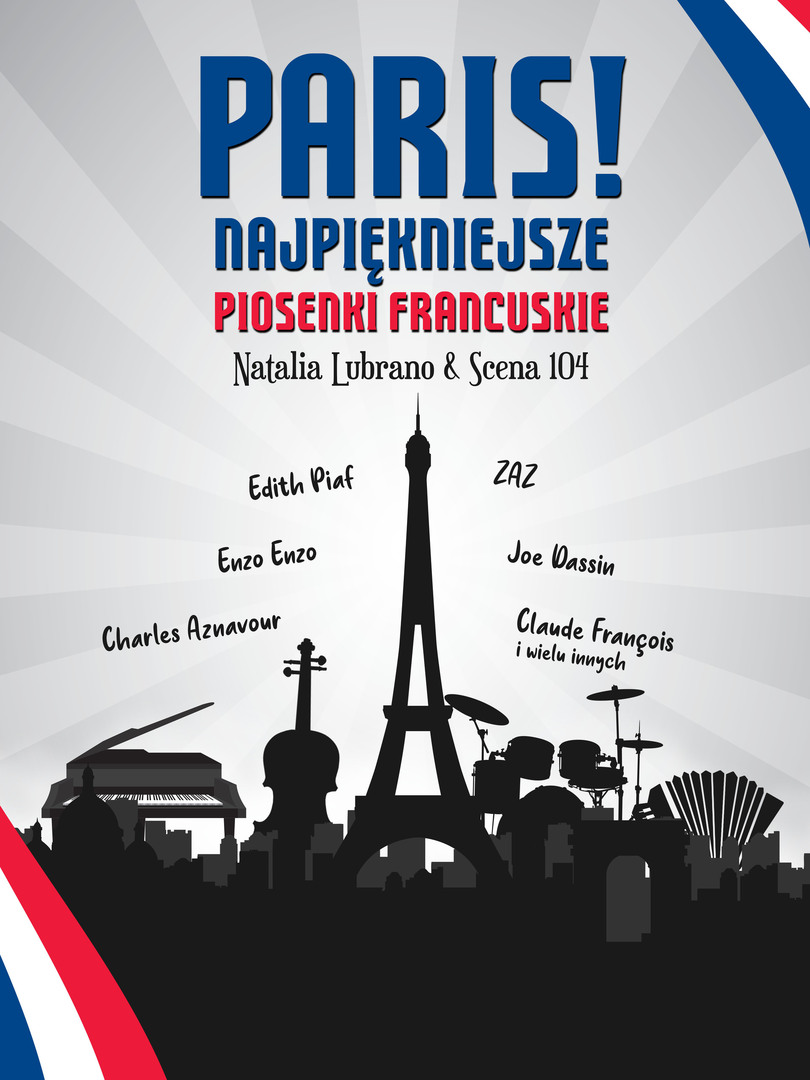 Muzyczne wędrówki paryskimi uliczkami nie mogłyby się odbyć bez ponadczasowych, poetyckich kompozycji, na których wychowało się już kilka pokoleń entuzjastów francuskiej muzyki. Wśród znanych szerokiej publiczności utworów, usłyszymy najpiękniejsze piosenki takich artystów jak: Edith Piaf, Charles Aznavour, Enzo Enzo, Joe Dassin, ZAZ czy Claude François. Program Natalii Lubrano z akompaniamentem Sceny 104 stanowi ukłon w stronę największych nazwisk tworzących obraz francuskiej muzyki. Tego wieczoru z pewnością nie zabraknie czułych emocji i wzruszeń, a powrót do kultowych utworów znad Sekwany, zachęci nas do romantycznej zadumy.