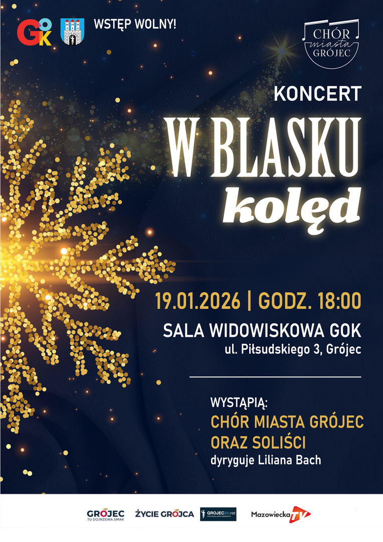 Choć Święta już za nami, w Grójcu nie kończymy wspólnego kolędowania. Już w przyszły poniedziałek (19.01.2026) sala widowiskowa Grójeckiego Ośrodka Kultury wypełni się dźwiękami, które najlepiej brzmią właśnie na żywo.